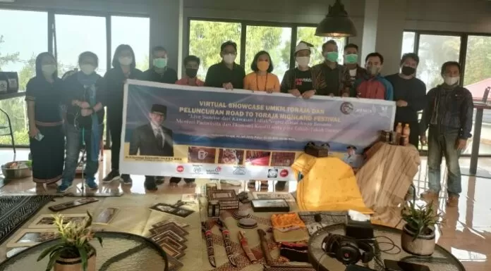 Terkini.id, Toraja Utara - Ngopi Toraja di atas awan bersama Menteri pariwisata dan dan ekonomi kreatif, dalam kegiatan virtual showcase UMKM yang menghadirkan UMKM khas Toraja seperti tenun, kerajinan ukir, kopi Toraja dan kerajinan lukis dilaksanakan di To'Tombi Lolai Kamis 22 Juli 2021.