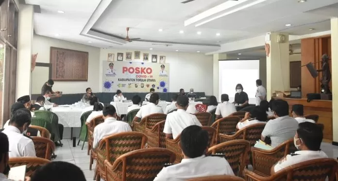 Terkini.id, Toraja Utara - Tim Satuan Tugas (Satgas) Covid melaksanakan rapat evaluasi yang berlangsung di ruang rapat satgas yang terletak di Lantai 2 Kantor Gabungan Dinas Marante, Rabu 4 Agustus 2021.